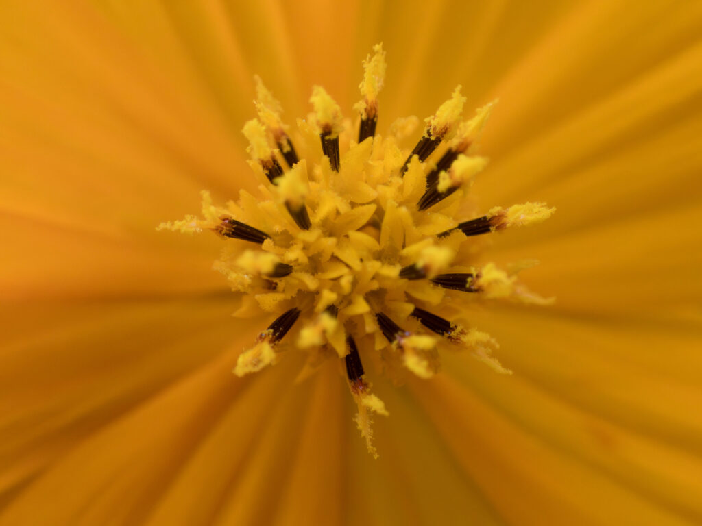 まだ慣れてないのでピントが花粉に合っちゃってますが、黄色い花のドアップ写真。